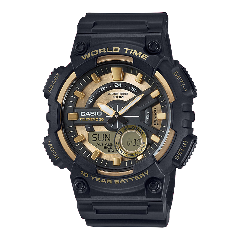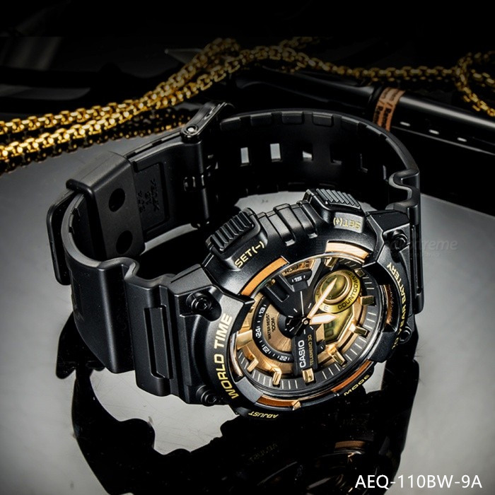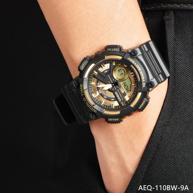 CASIO卡西欧手表男士学生运动防水黑金电子表AEQ-110BW-9A