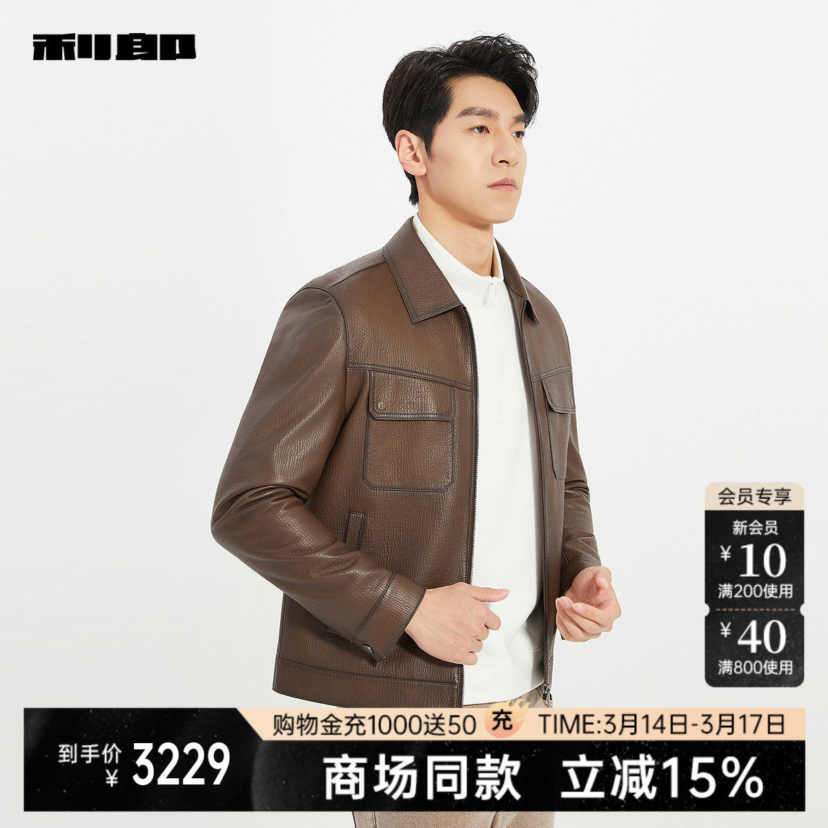 【商场同款】利郎官方纯色绵羊皮皮衣男士春秋款外套25QZP3021Y