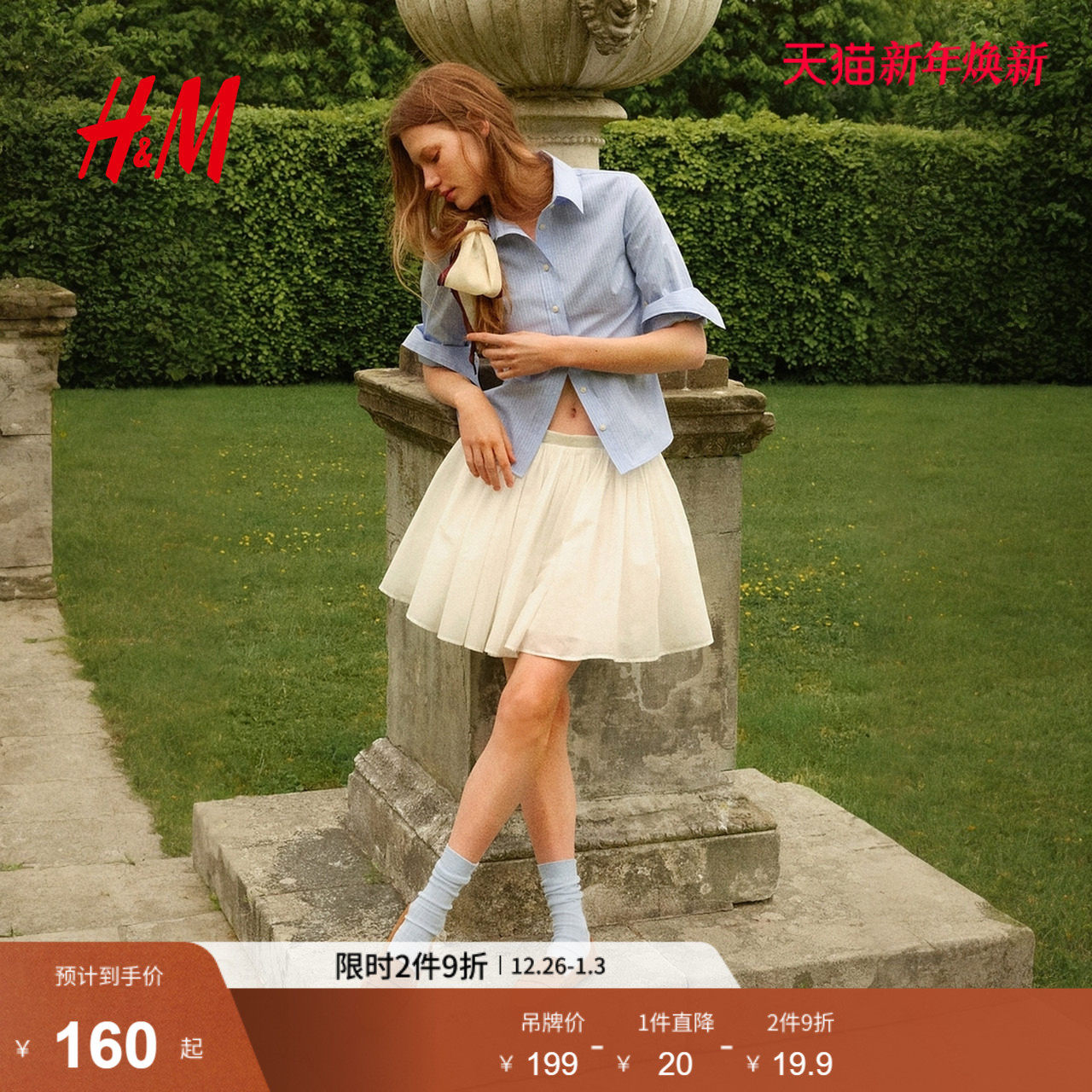 HM女装衬衫2025冬季新款掐腰设计感上衣简约休闲府绸衬衣1297832