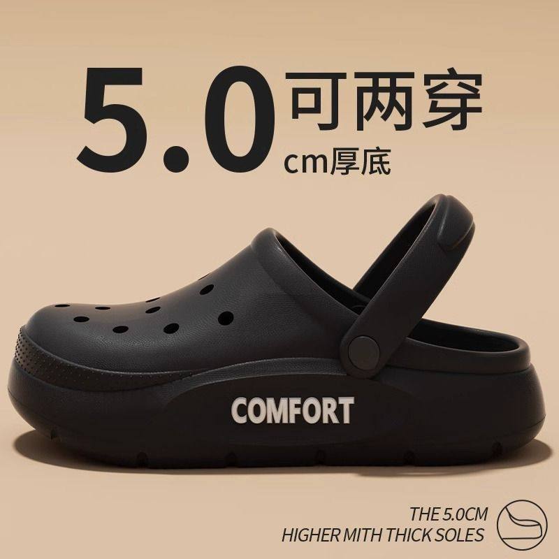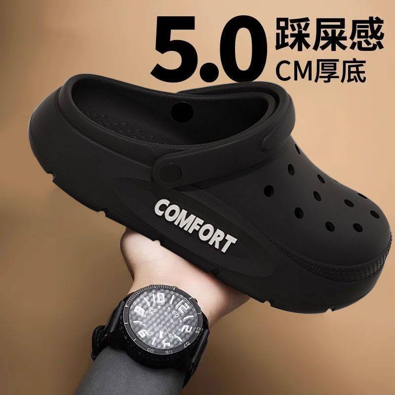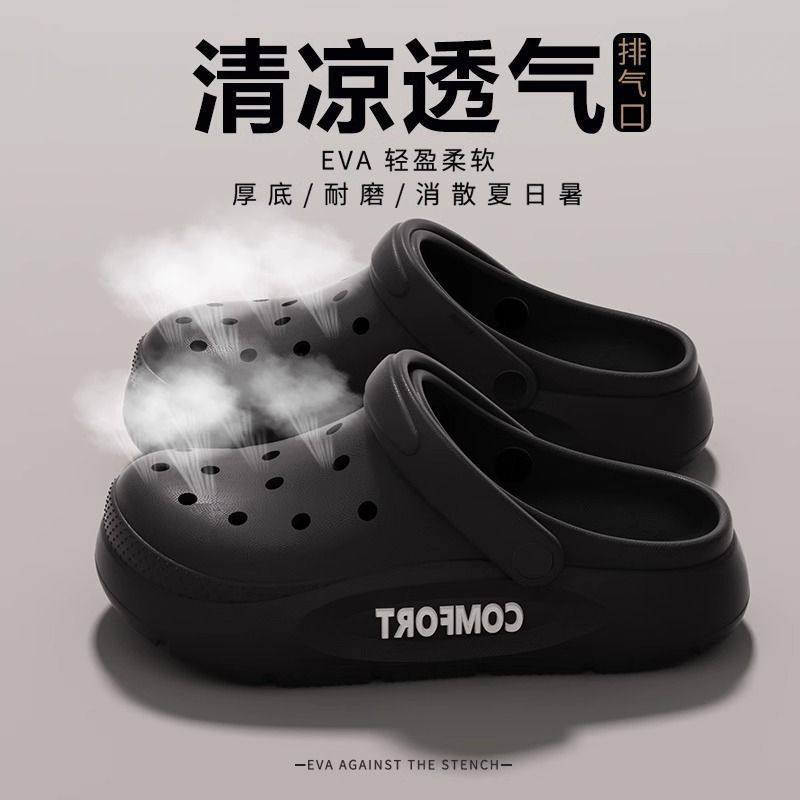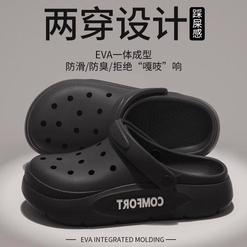 居家外穿厚底EVA踩屎感洞洞鞋黑色多规格