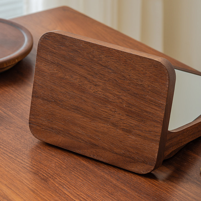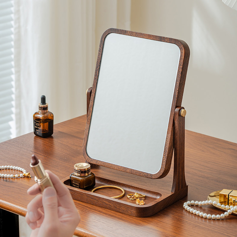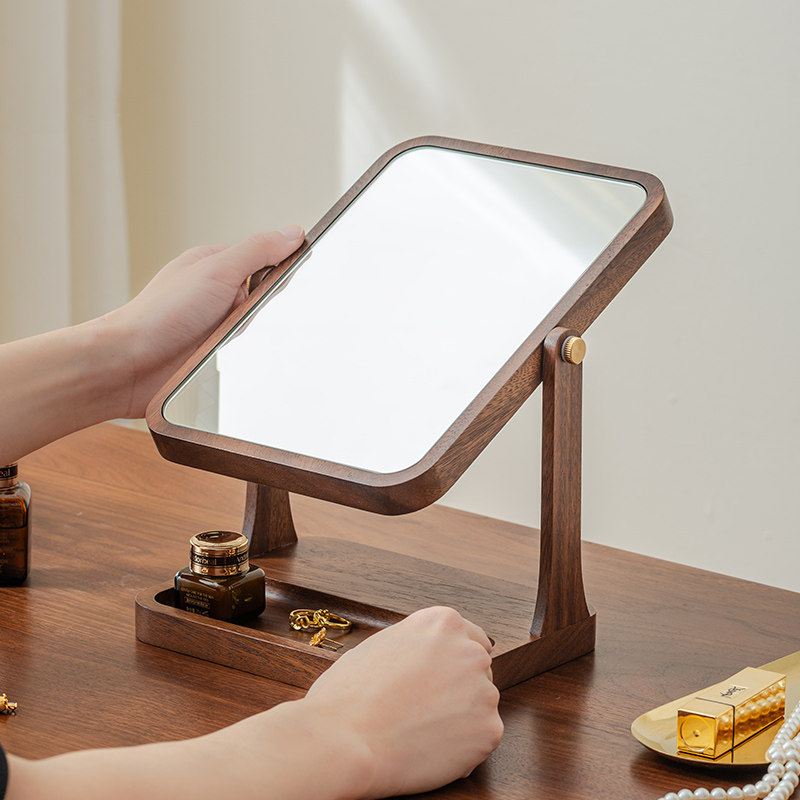 木雅轩胡桃木梳妆镜实木化妆镜收纳美妆台式桌面家用卧室镜子精致