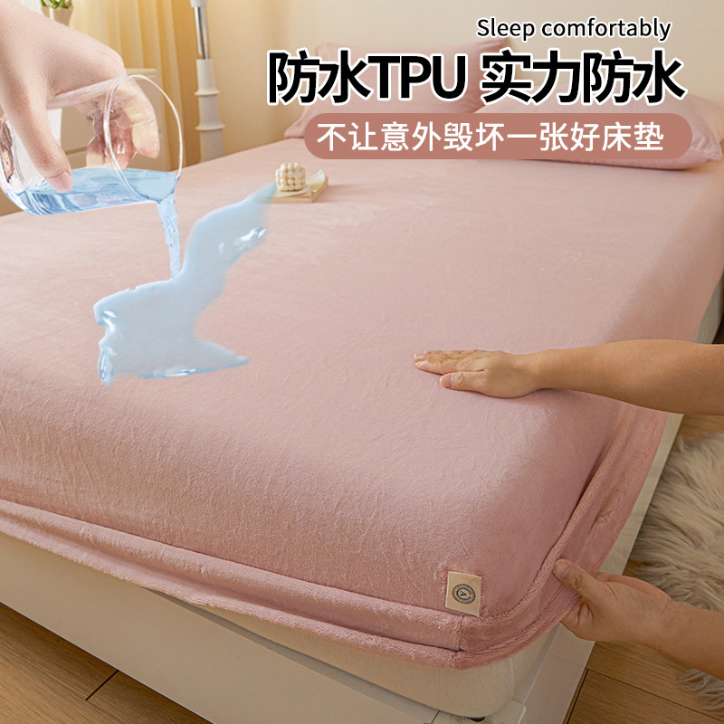 7A抗菌加厚牛奶绒床笠防水隔尿床罩床垫保护罩床套罩冬季加绒床单