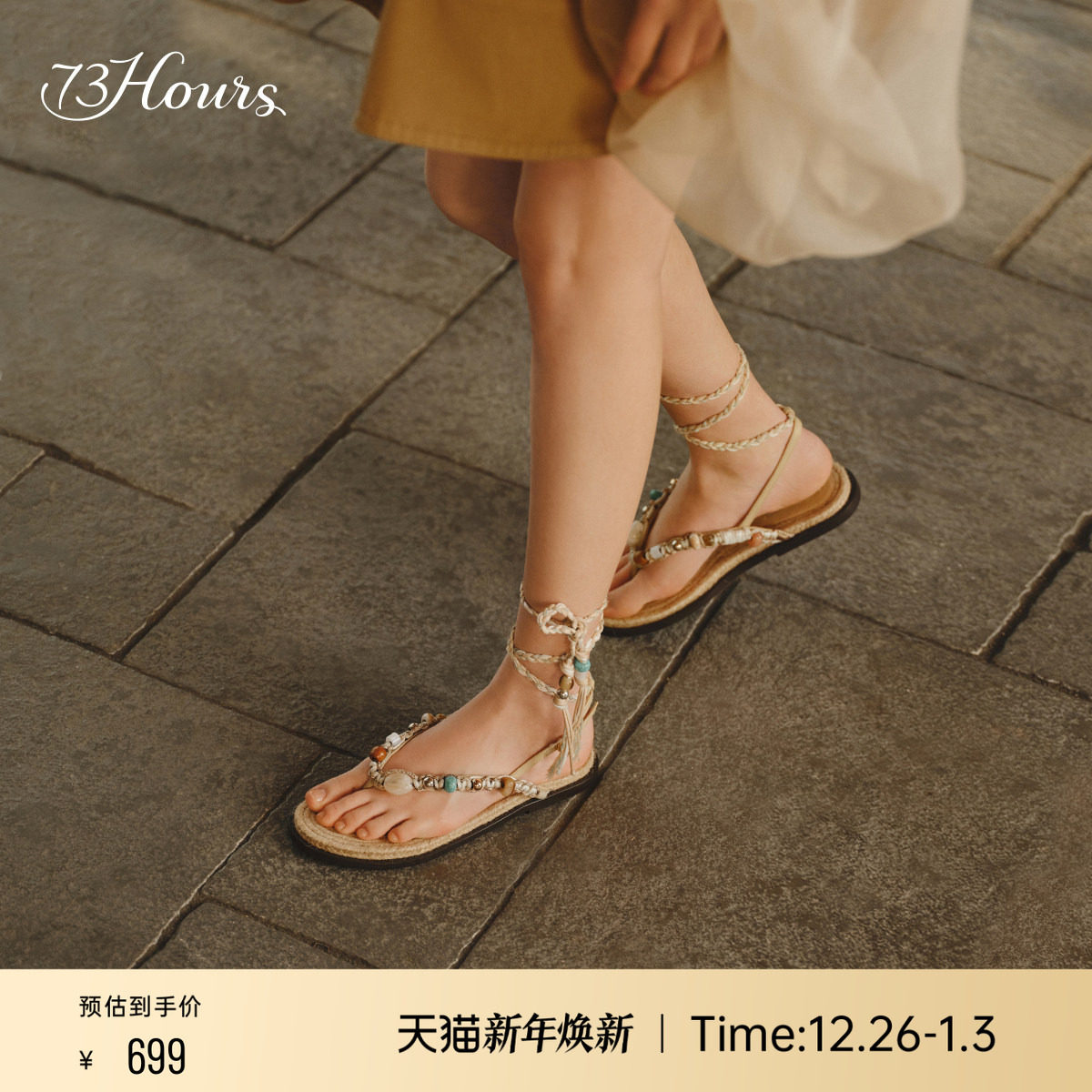 73hours女鞋糖果罐子2025夏季波西米亚风外穿夹脚凉拖鞋罗马凉鞋