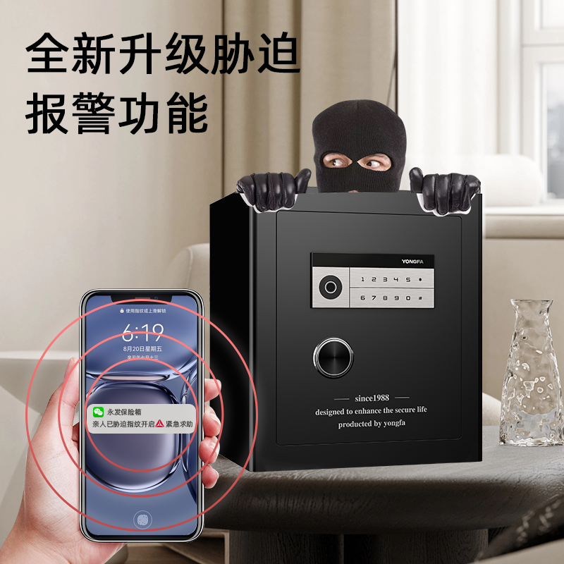 YONGFA永发保险柜智能家用45 60cm小型指纹防盗全钢保险箱办公暗格保管箱电子密码钥匙保管柜入墙床头柜
