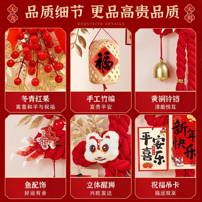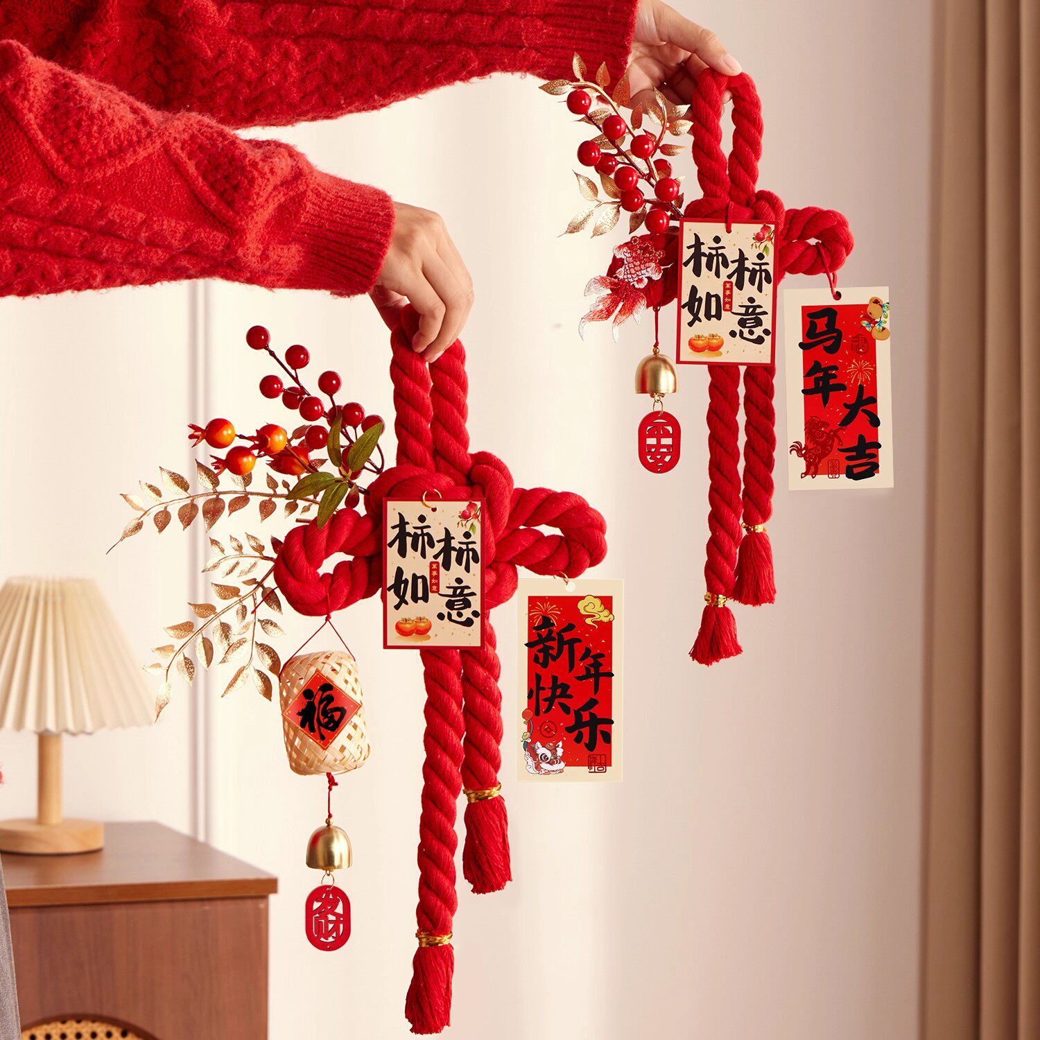新年装饰2026马年入户门把手挂件福字万字结过年春节氛围布置用品