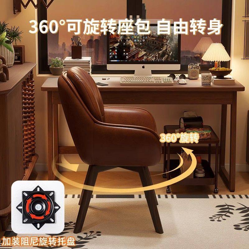 2025新家用电脑椅书房书桌椅中古风卧室椅办公实木椅子可升降旋转
