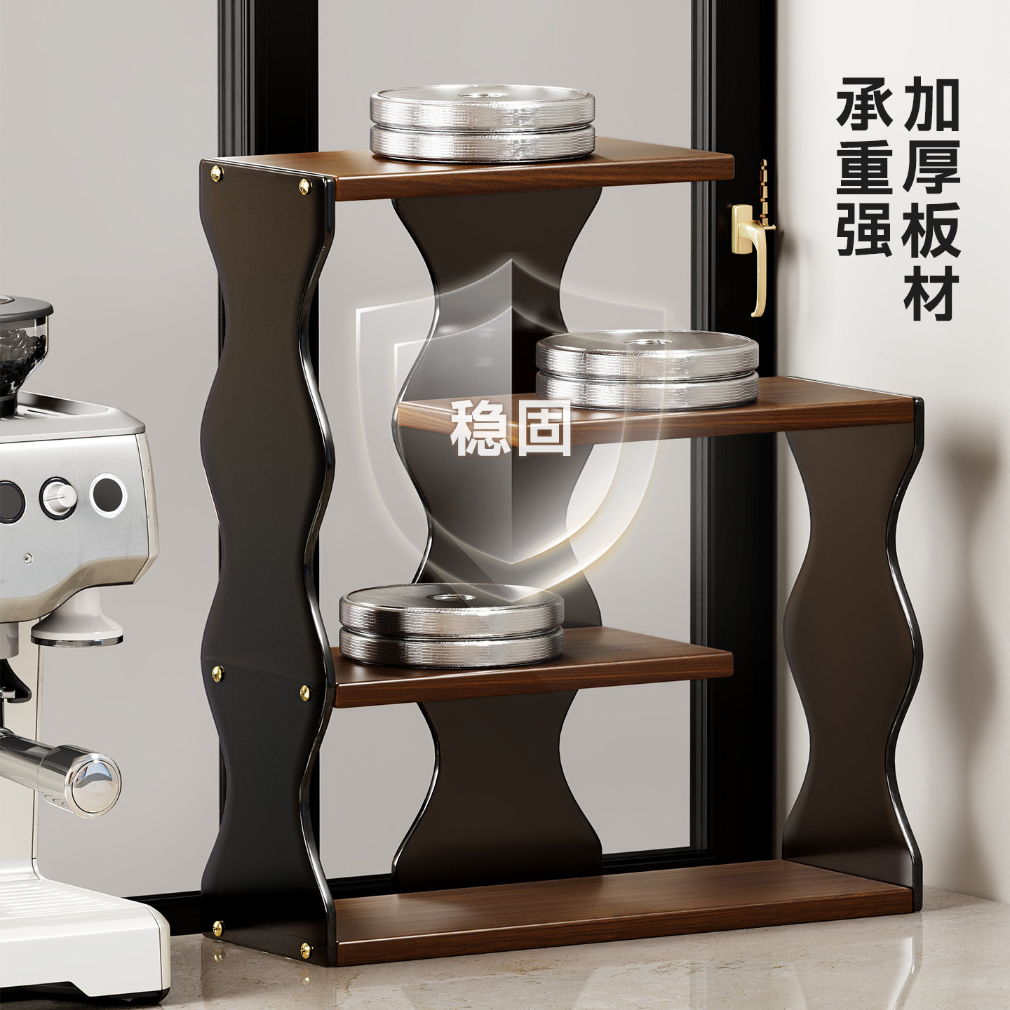 亚克力杯架桌面置物架台面复古波纹多层杯子咖啡收纳架开放式水壶
