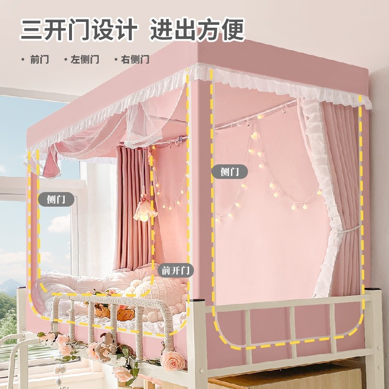 全遮光防蚊床帘蚊帐一体式学生宿舍上铺遮挡围帘帘子单人床窗帘布