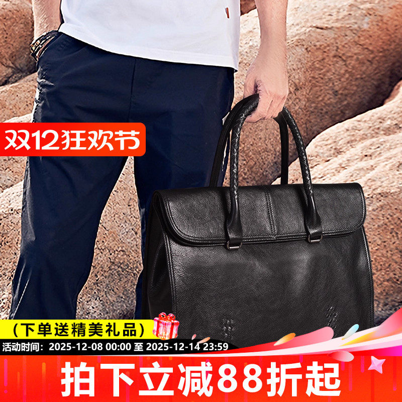 派保爵大容量商务公文包时尚电脑包潮流手提包质感头层牛皮托特包