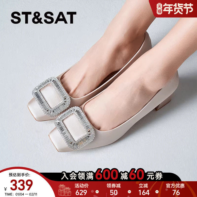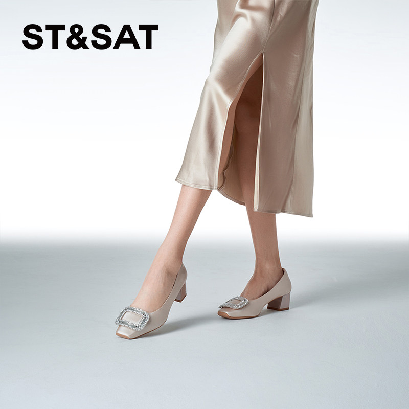 星期六浅口单鞋爆款优雅方头中粗跟平底通勤女鞋潮SSD1111215