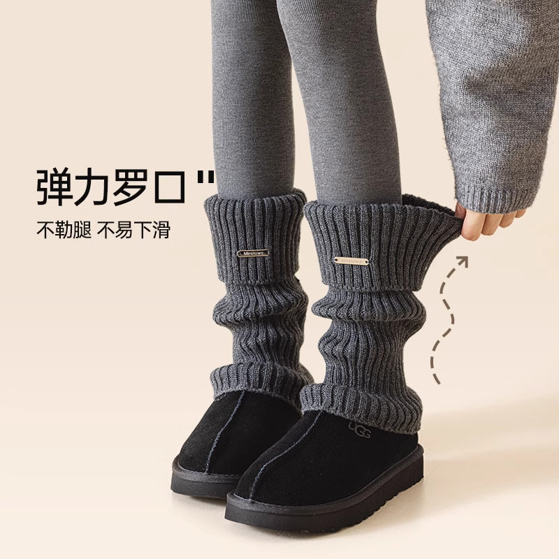 金属标堆堆袜套袜子女秋冬季加厚保暖腿套白色针织小腿袜配雪地靴
