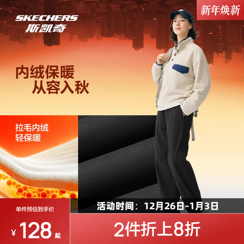 斯凯奇加绒闪穿裤男女2025年秋冬宽松长裤防泼抗皱运动保暖直筒裤