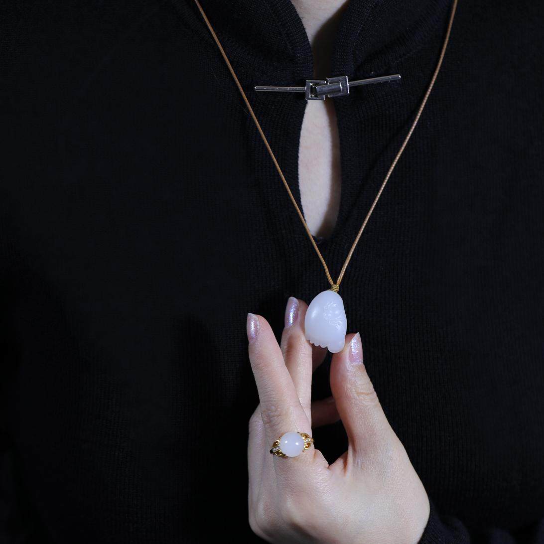和合玉器和田玉羊脂白玉蜘蛛脚丫知足挂件吊坠项链男女儿童节日礼
