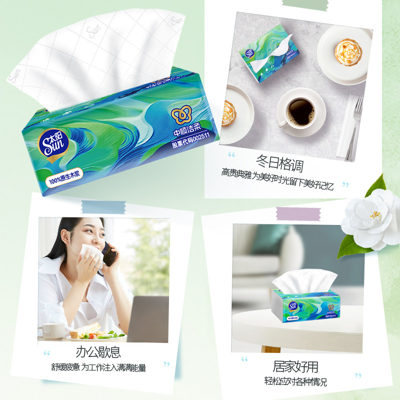 中顺洁柔抽纸24包纸巾纸巾3层70抽餐巾纸面巾纸家用卫生纸实惠装