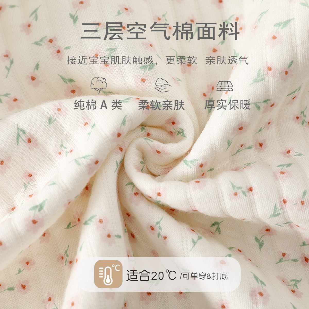 婧麒新生婴儿连体衣夹棉秋冬小月龄宝宝衣服婴幼儿外出服早秋睡衣