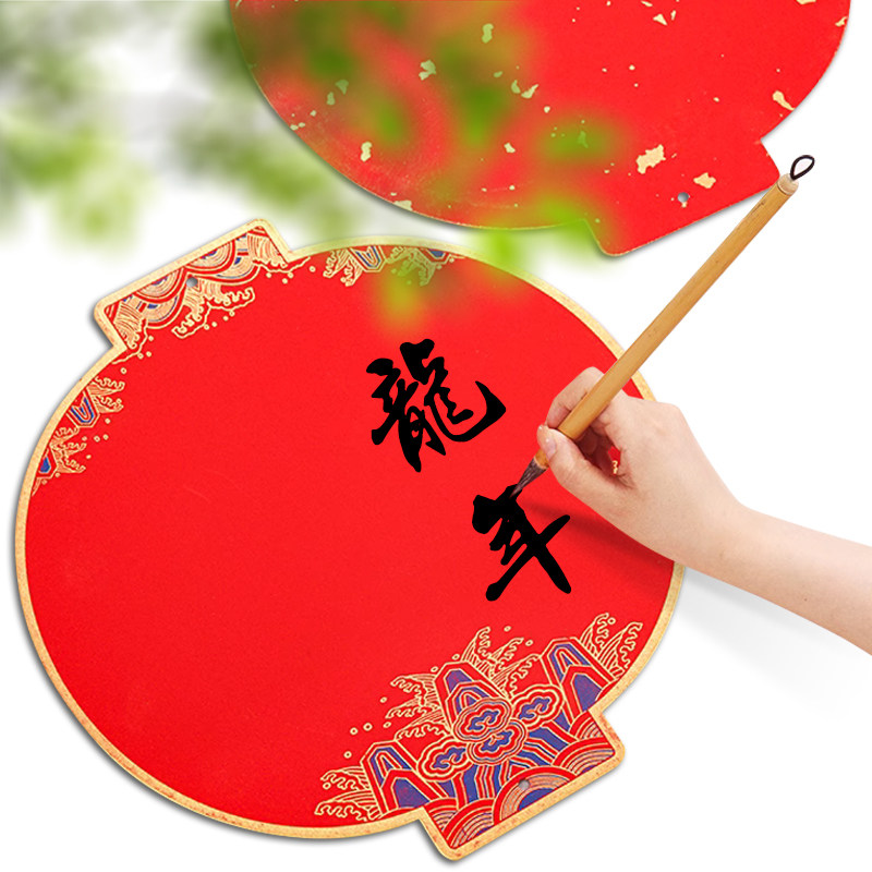 2026福字福卡宣纸挂件卡纸圆形扇形灯笼中国结挂件加厚空白手写万年红对联纸装饰写字作品纸国画书法蜡染红色