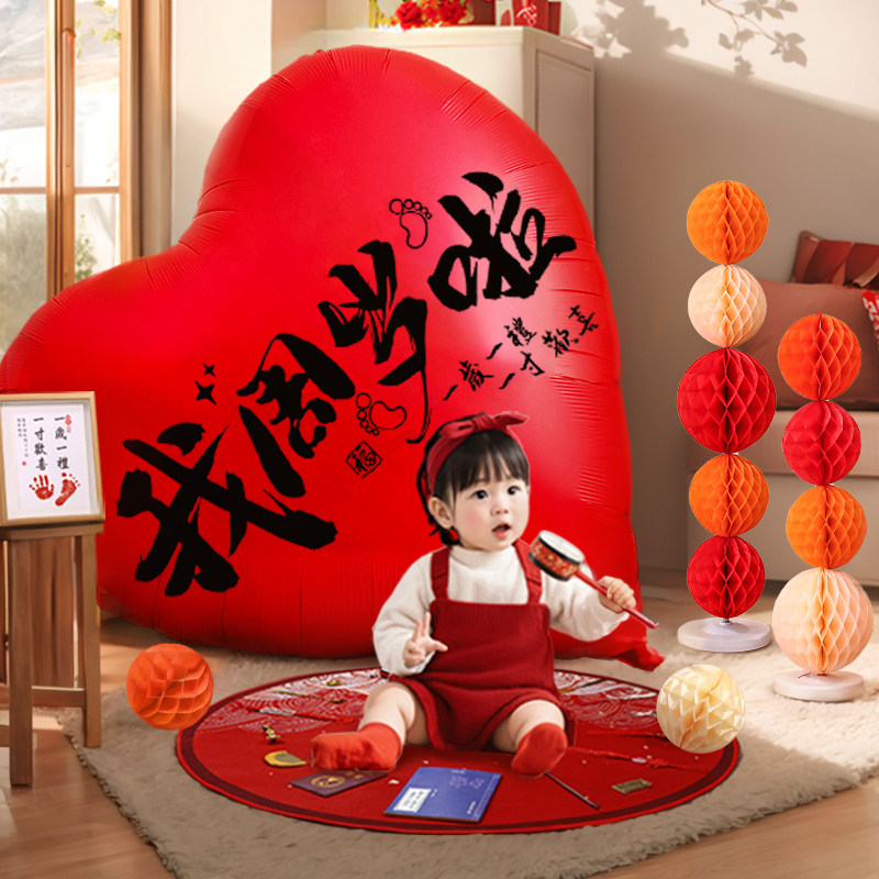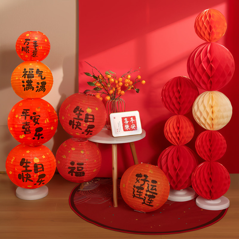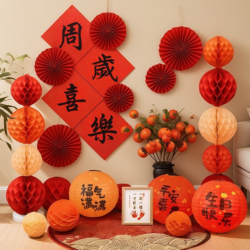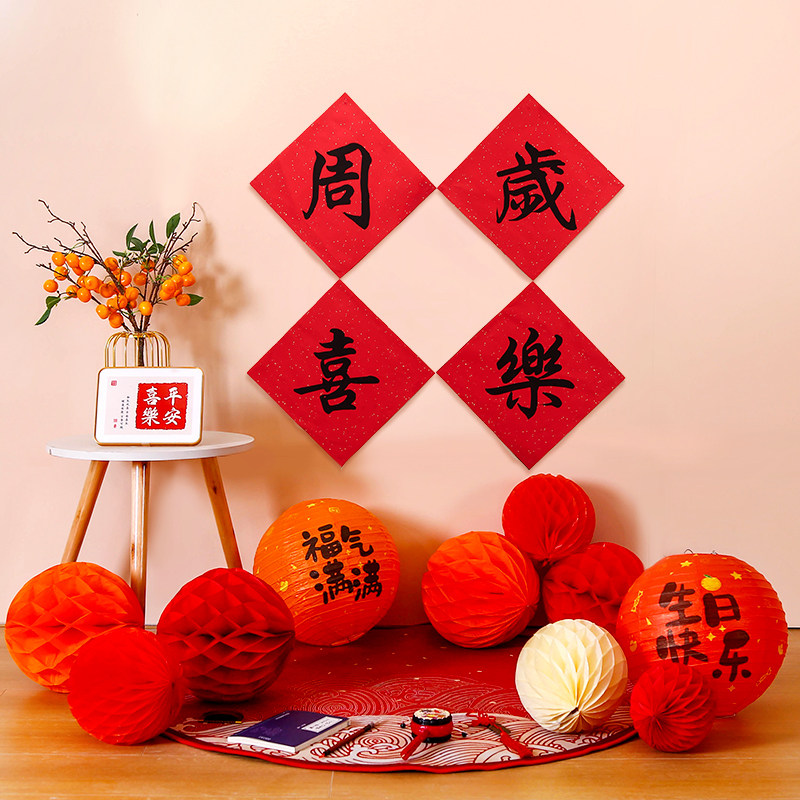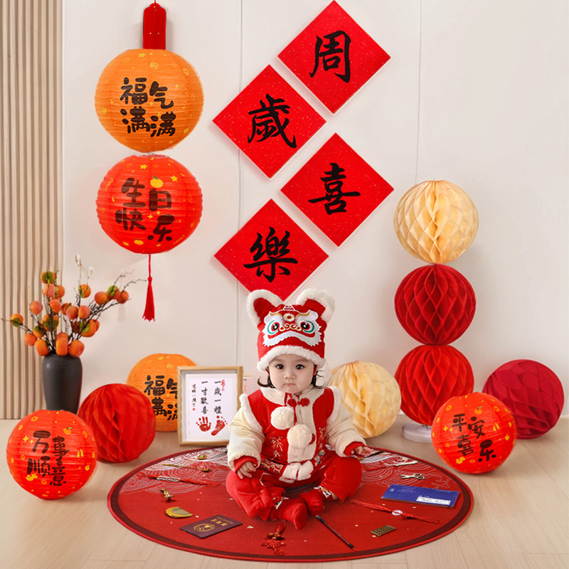 灯笼周岁生日布置场景装饰氛围宝宝背景墙抓周宴拍照道具红色仪式