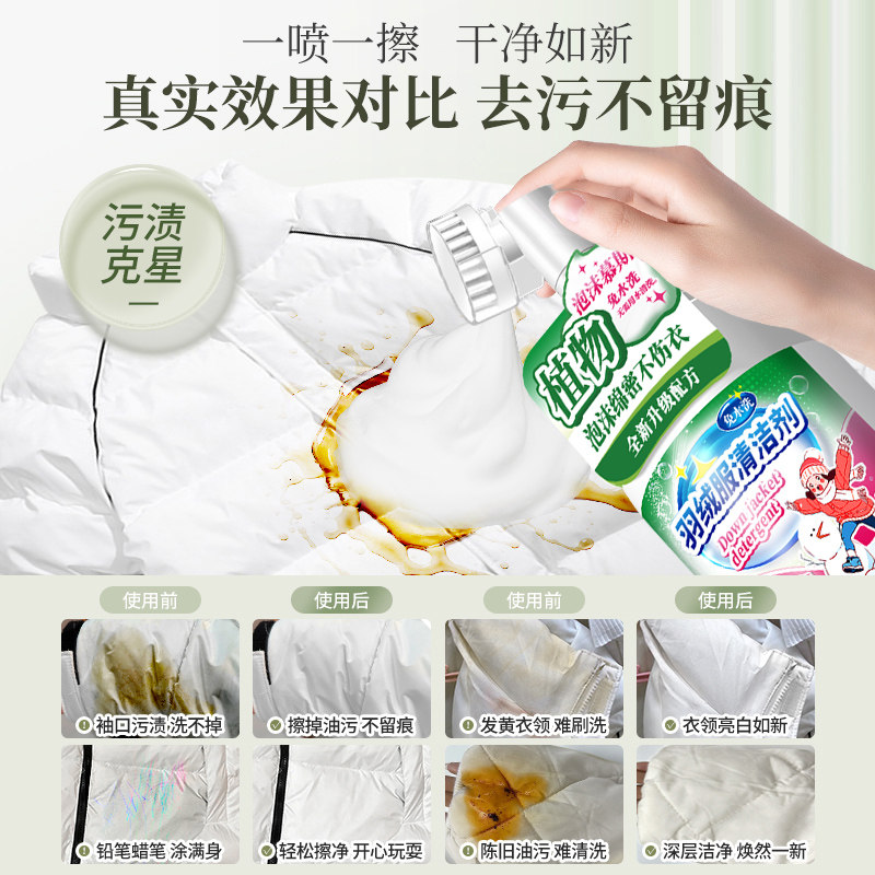 沫檬羽绒服清洗剂免水洗专用白色羽绒服干洗剂去污渍清洁神器蓬松