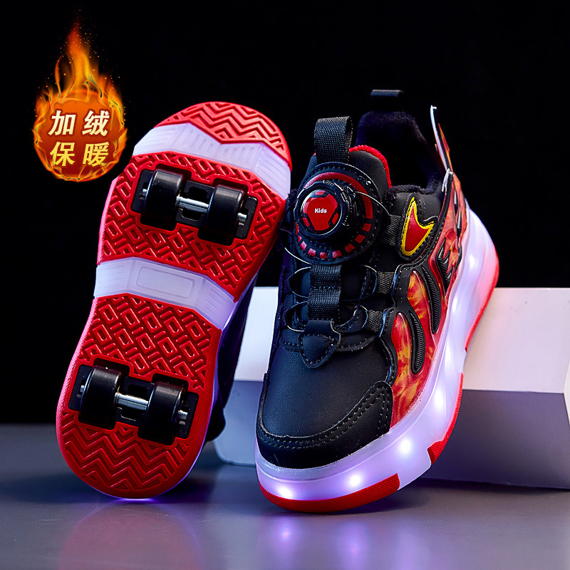 儿童暴走鞋男童加绒二棉爆走轮滑鞋学生亮灯隐形溜冰鞋四轮滑轮鞋