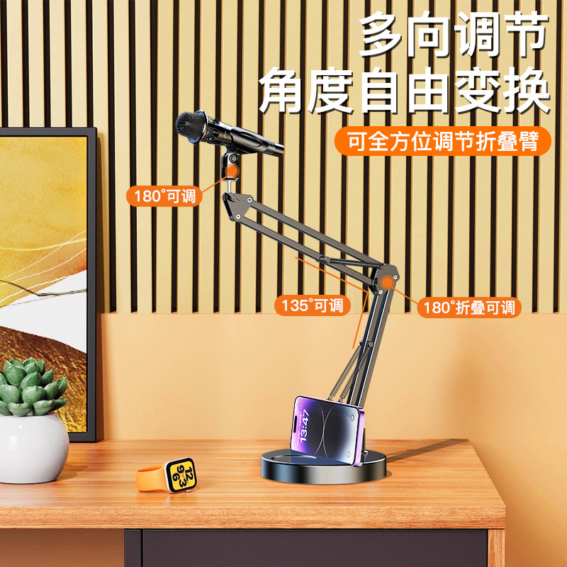 麦克风支架桌面话筒架子直播金属悬臂K歌麦架升降手机万能电容麦