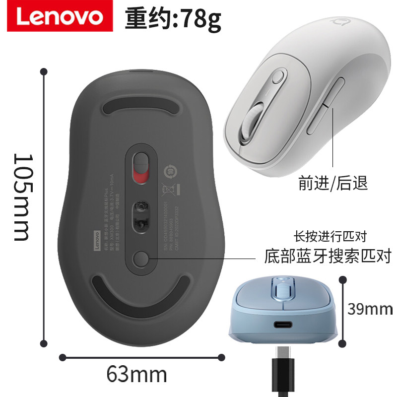 联想蓝牙无线静音鼠标原装小新plus便携typec充电笔记本电脑鼠标