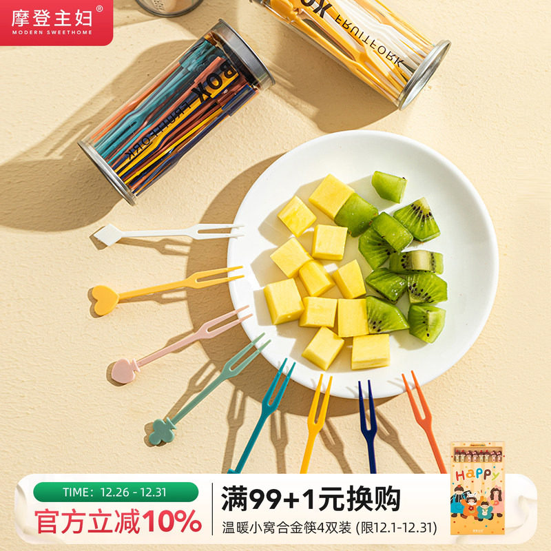摩登主妇一次性水果叉家用小叉子蛋糕甜品叉儿童安全水果签果插