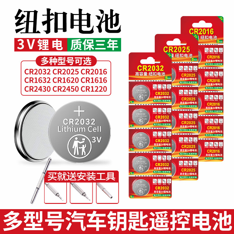 CR2032/2025/2016/2450车钥匙遥控器纽扣电池适用宝马奔驰大众奥迪丰田本田轩逸主板电子体重秤3v大容量电池