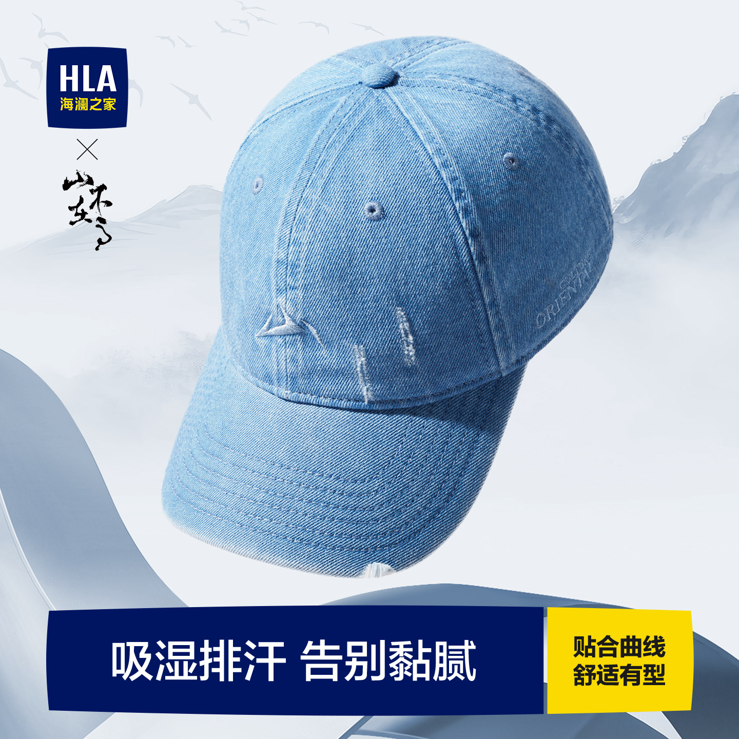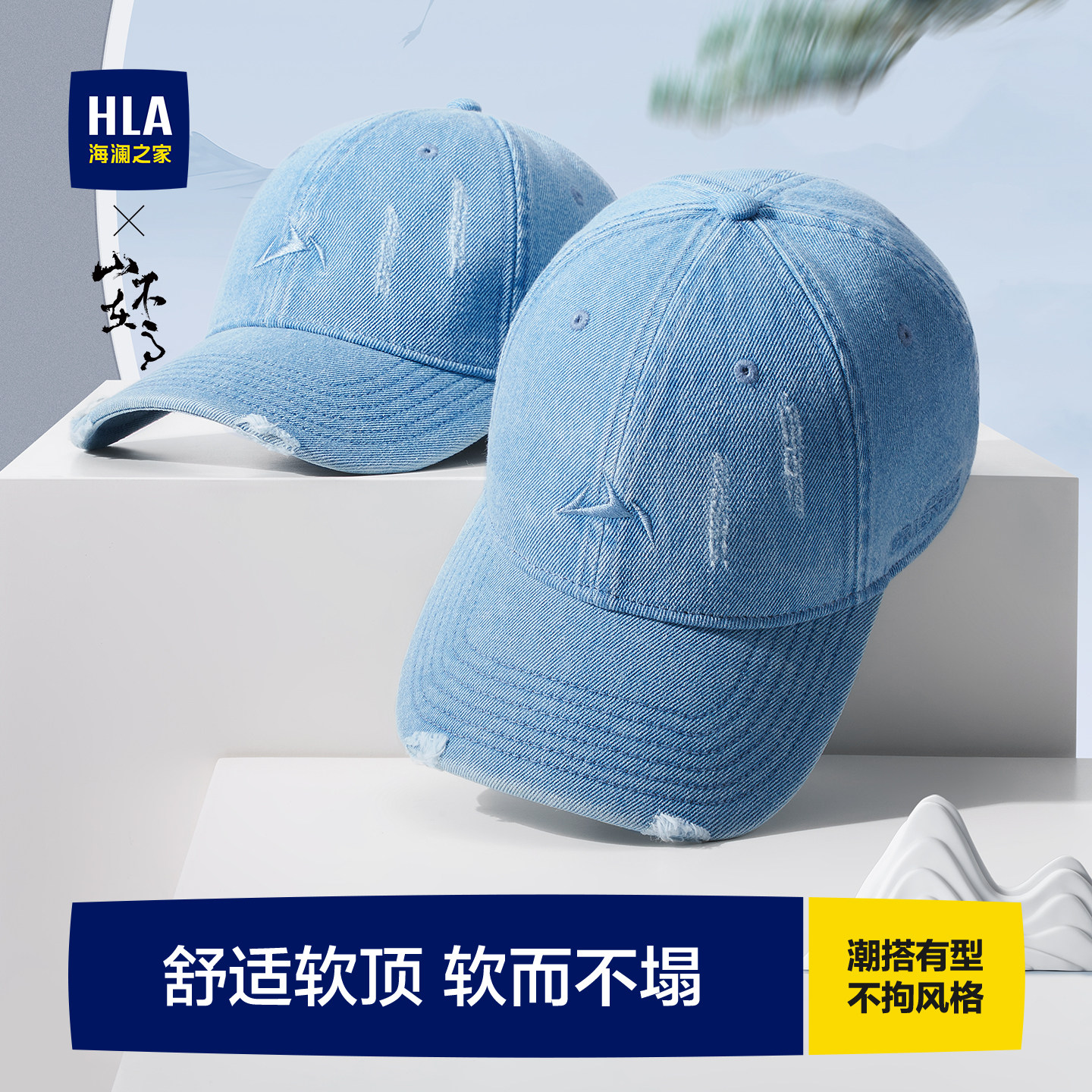 海澜之家棒球帽男士潮流新款户外骑行鸭舌帽破洞款牛仔复古帽子女