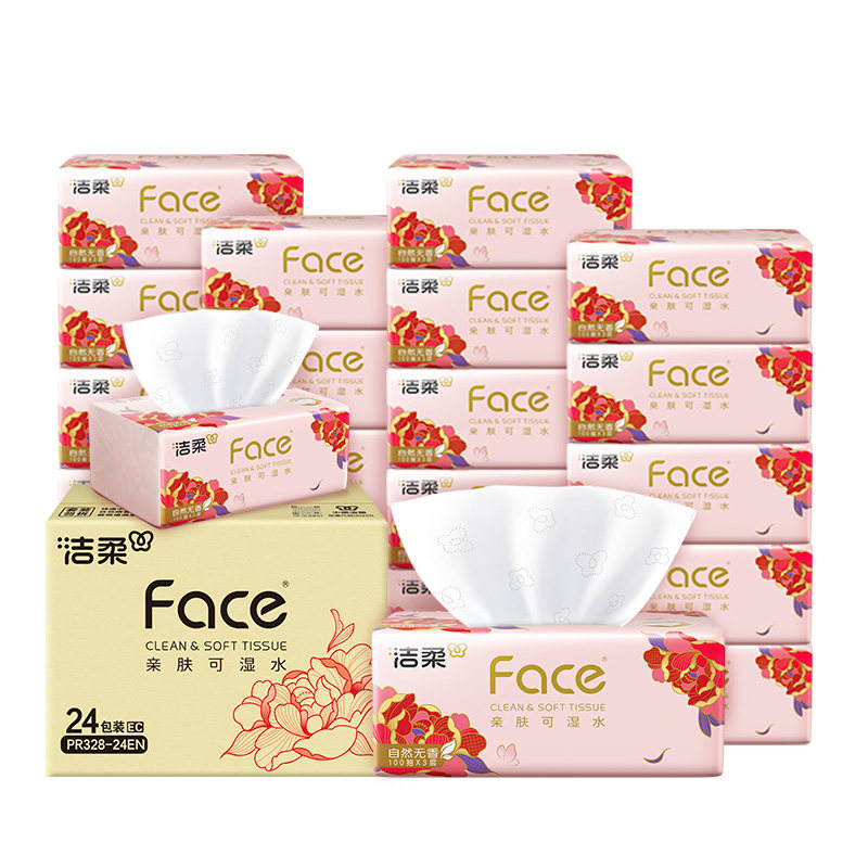 洁柔face抽纸新春款卫生纸母婴适用3层100抽24包整箱面巾纸餐巾纸
