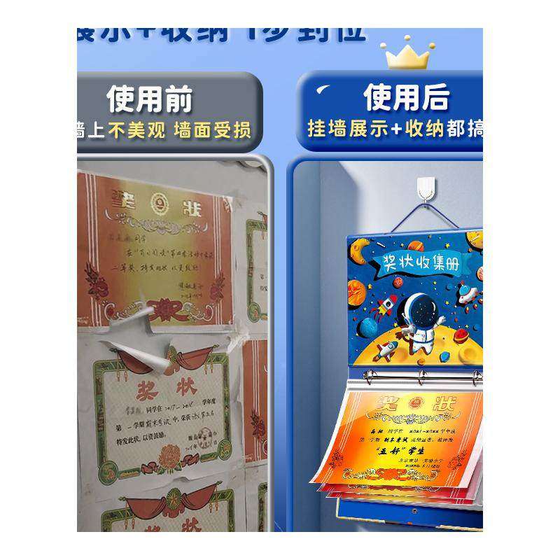 奖状收集册可挂墙免打孔 A3大号儿童荣誉证书册 多功能文件收藏夹展示夹