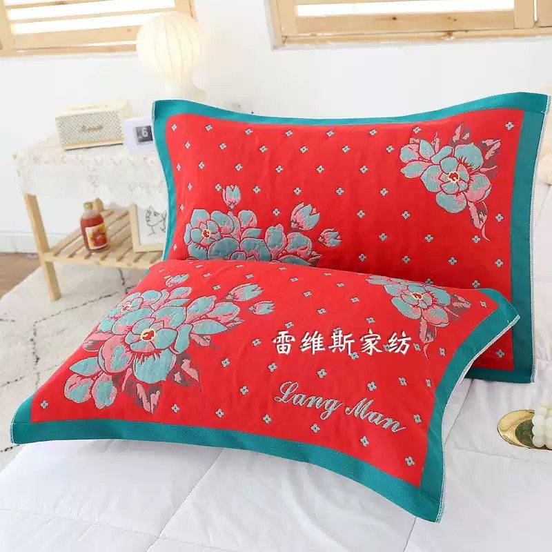 纯棉纱布枕巾一对装家用吸汗透气情侣枕头巾四季可用灰色红色等