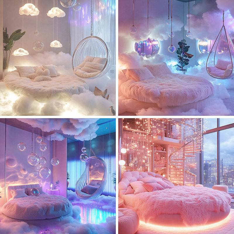 新款抖音快手氛围感温馨女主播卧室主播直播背景布3d立体壁纸画直播间场景布置高级感网红拍照区场景布置男