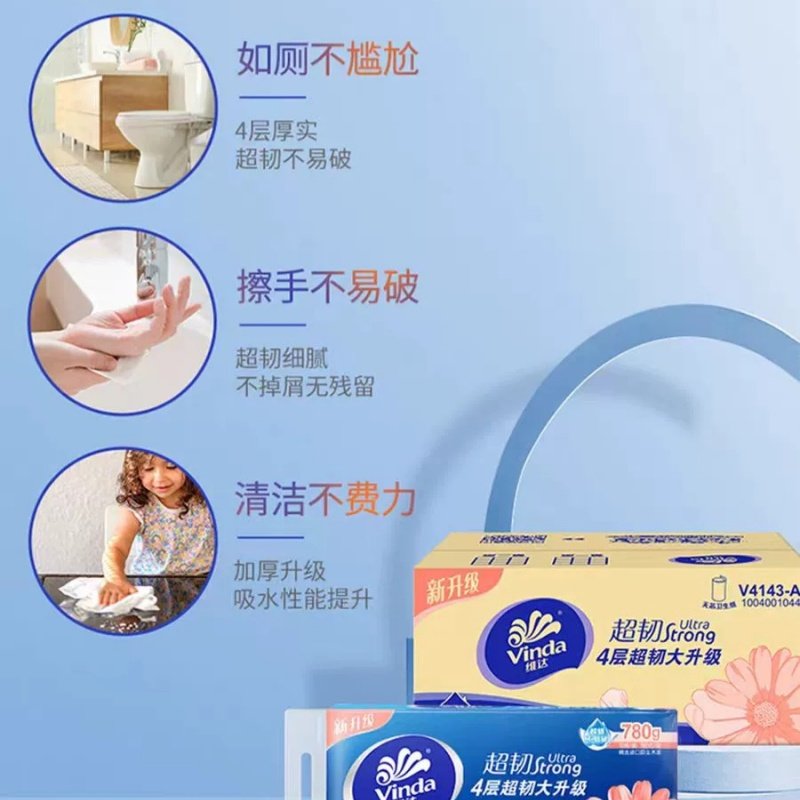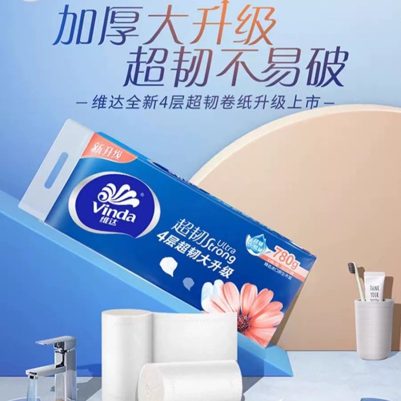 【孙颖莎推荐】维达卷纸蓝色经典卫生纸巾四层家庭装有芯卷纸厕所