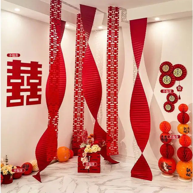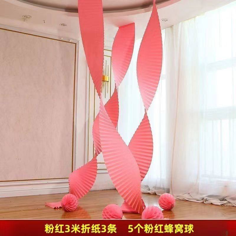 瓦楞纸婚房布置婚礼客厅折纸装饰元旦拉花长条玫红色卧室波浪粉色