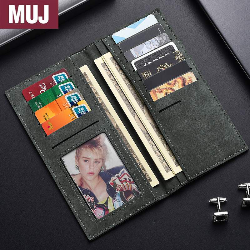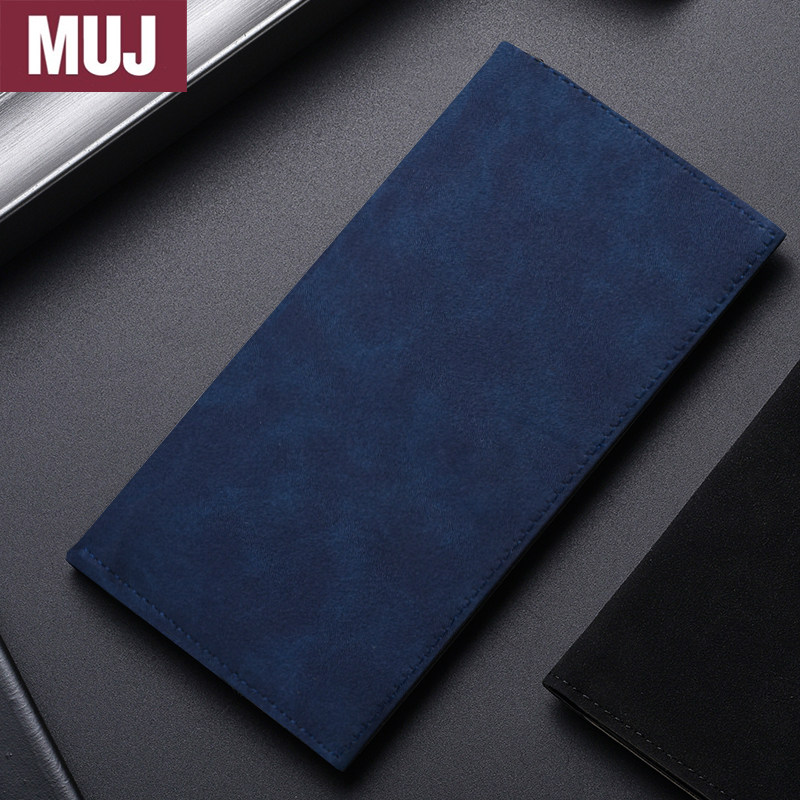 日本MUJ男士长款钱包翻毛皮超薄软皮皮夹钱夹证件卡包轻薄女小巧