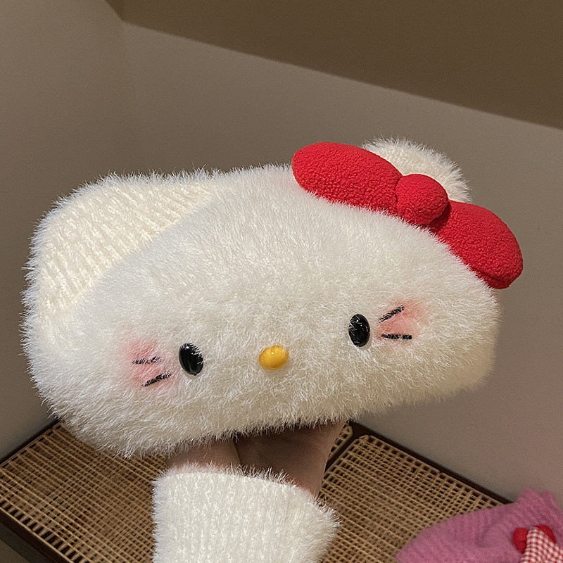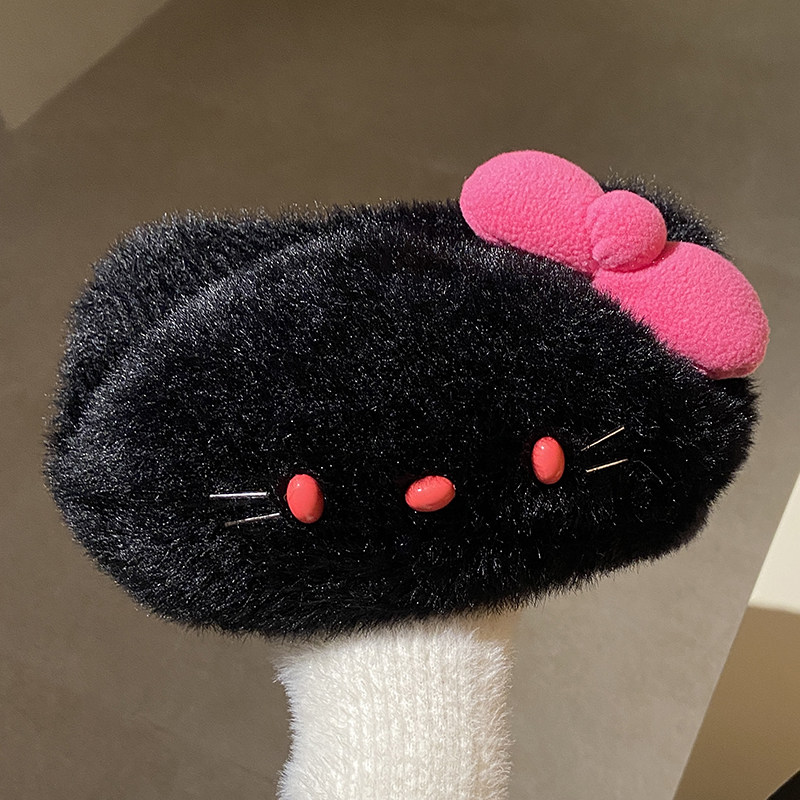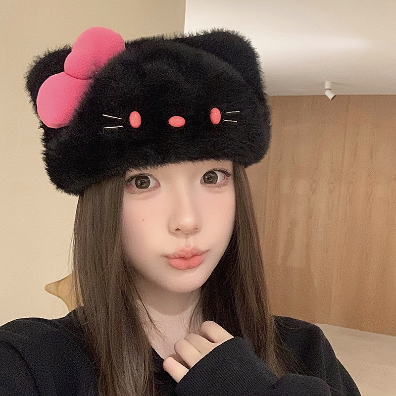 可爱腮红kitty猫毛绒贝雷帽女2025秋冬季显脸小帽子保暖白色黑色