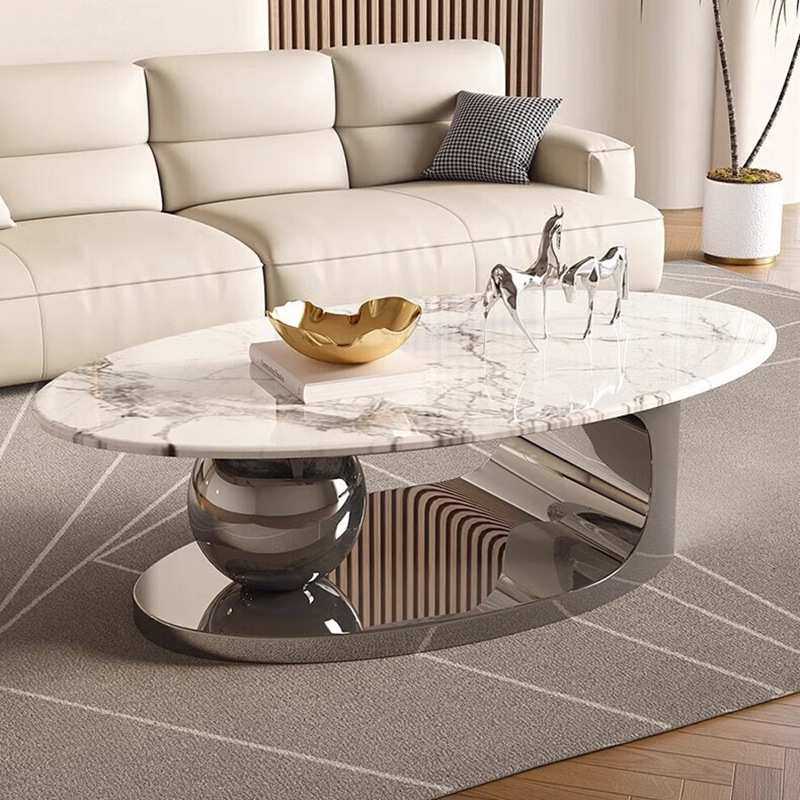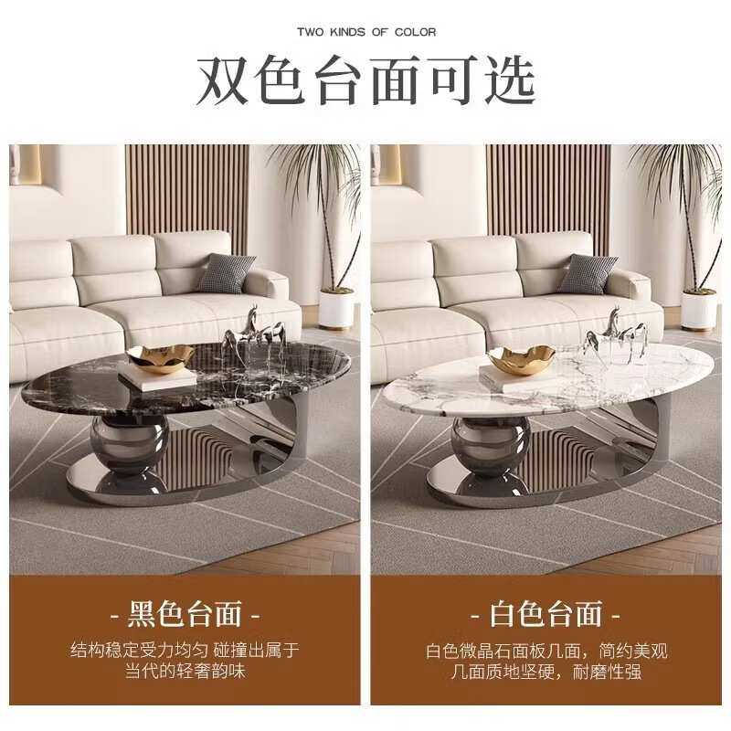 不锈钢 意式轻奢微晶石单茶几组合家具简约现代客厅小户型2024新
