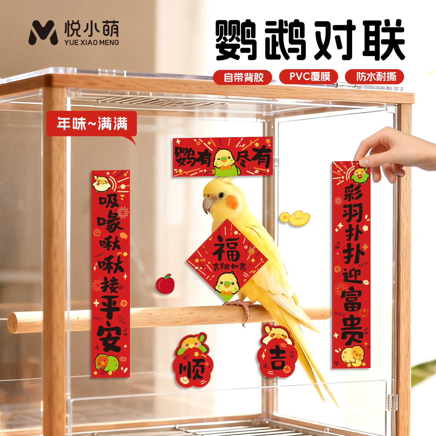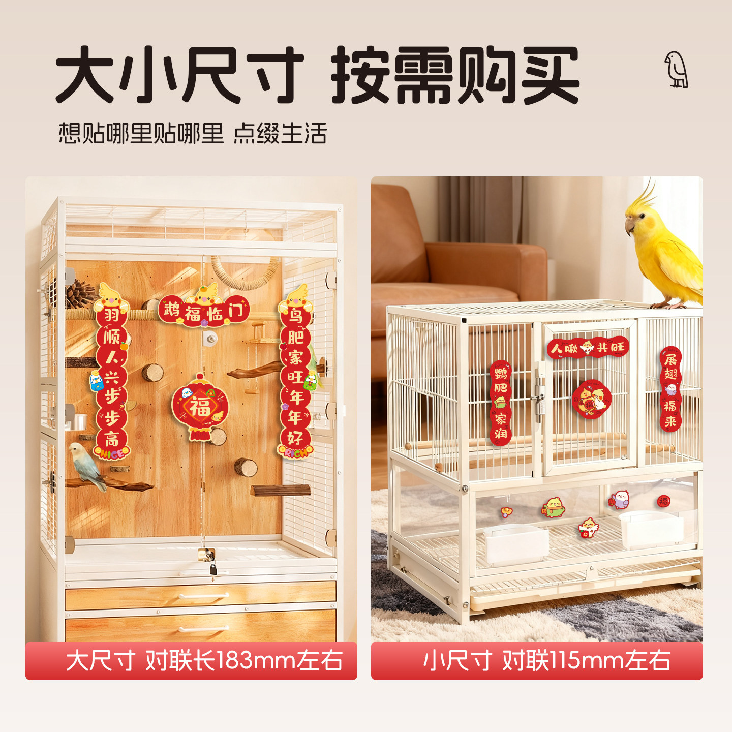 悦小萌新款鹦鹉对联虎皮牡丹玄凤春联宠物笼创意福字贴纸2026马年