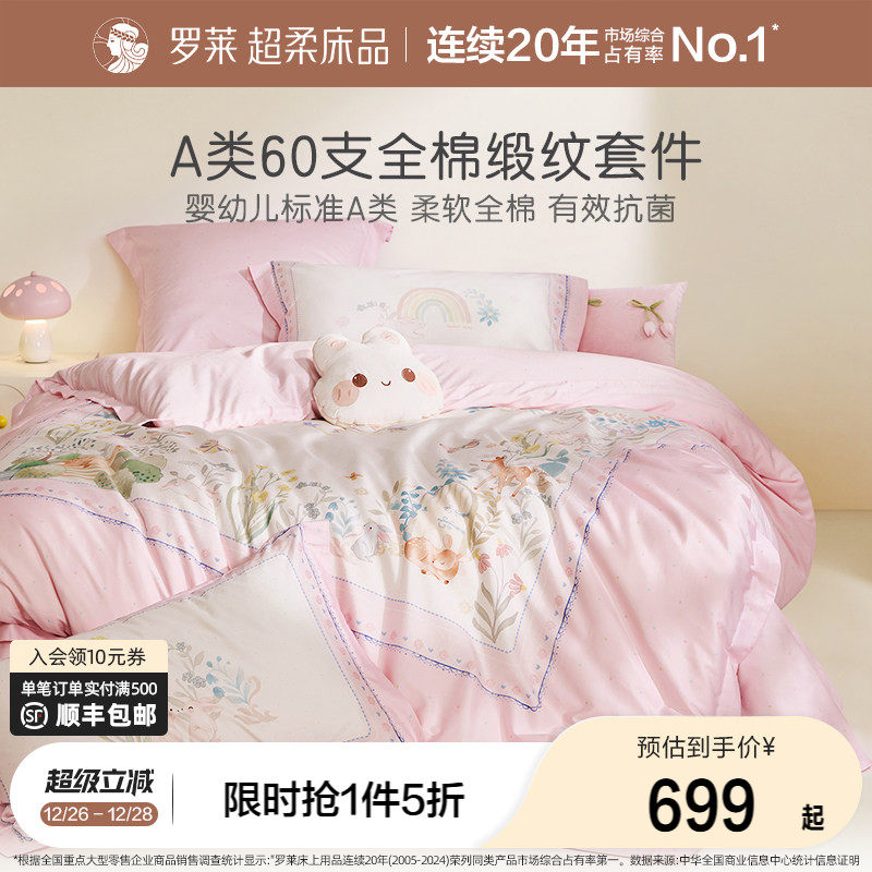 罗莱家纺儿童全棉纯棉床上四件套床单被套被罩床笠2025新款套件