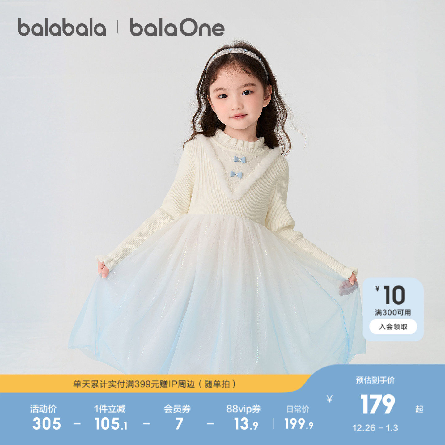 巴拉巴拉balaOne童装女公主裙2025秋冬新款儿童连衣裙针织网纱裙