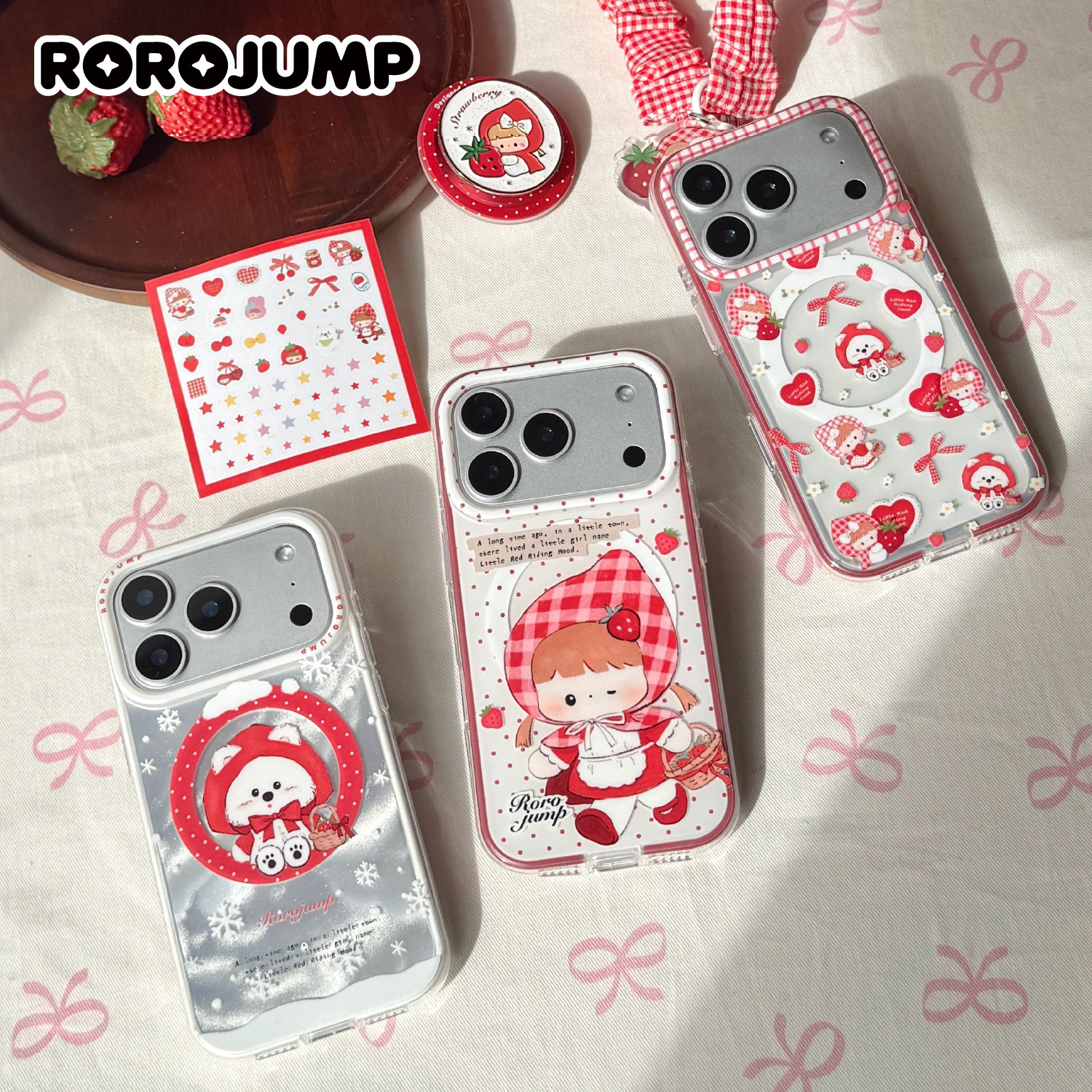 肉肉酱草莓小红帽适用iPhone17promax磁吸手机壳原创新款苹果16Pro磨砂二合一15电镀全包14可爱卡通可爱高级