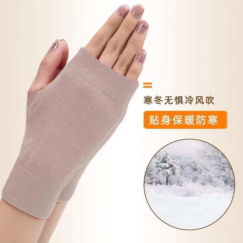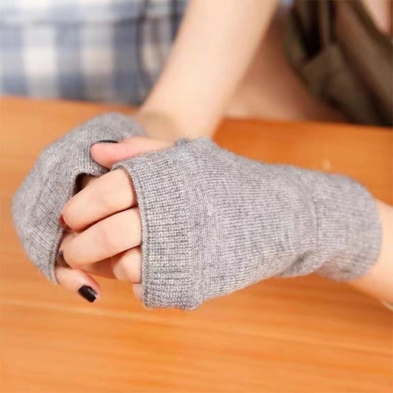 羊绒半指手套女冬短款保暖针织护腕手套男羊毛线漏露手指学生打字