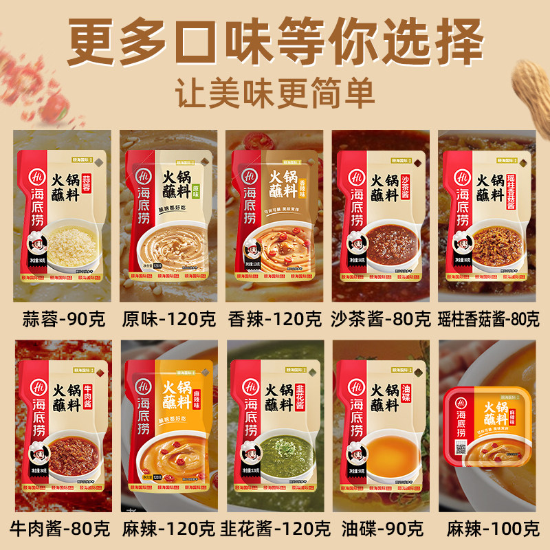 Hi海底捞火锅蘸料商用牛肉酱蒜蓉沙茶韭花酱油碟调味料芝麻酱清油