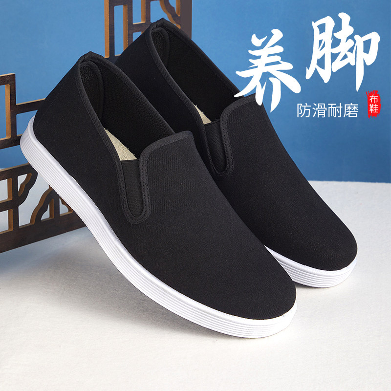 老北京布鞋中老年一脚蹬休闲鞋透气舒适男士爸爸鞋防滑传统鞋耐磨