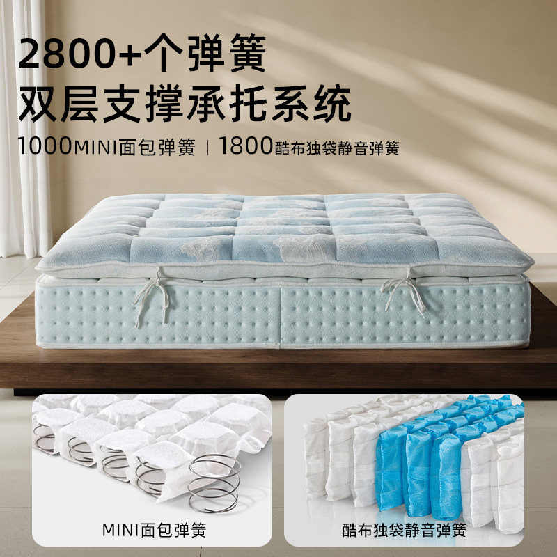 「寝物原始」整床无胶水独立袋装双层弹簧羊毛手工拉扣定制床垫