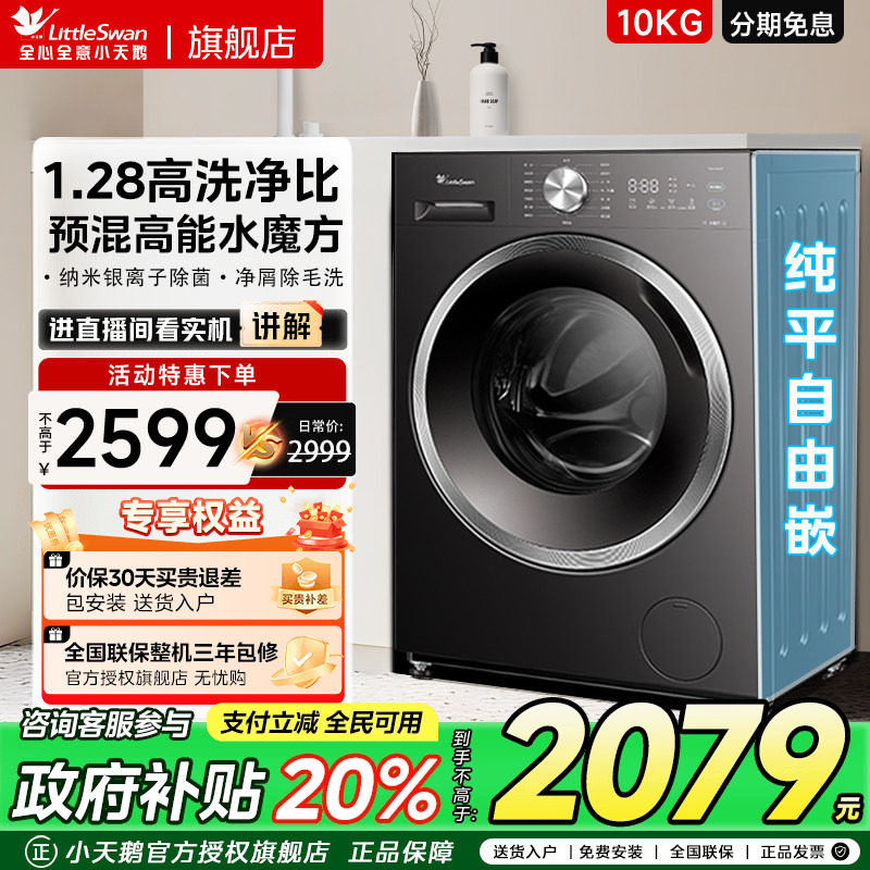 [1.28高洗净比]小天鹅水魔方10家用全自动滚筒洗烘一体洗衣机628T