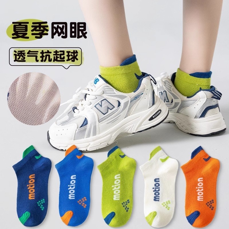 儿童袜子秋冬百搭运动网眼袜男童女童宝宝小孩中低筒纯棉冰丝船袜