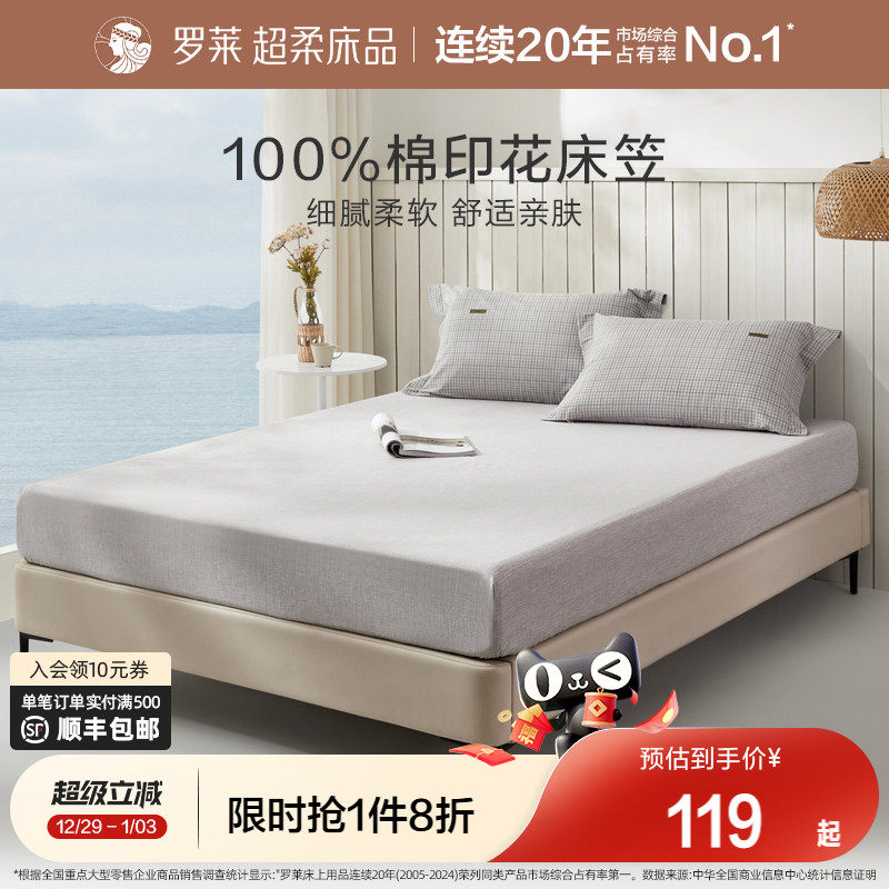 罗莱家纺床笠单件床罩席梦思保护套纯棉全棉简约学生宿舍单双人床