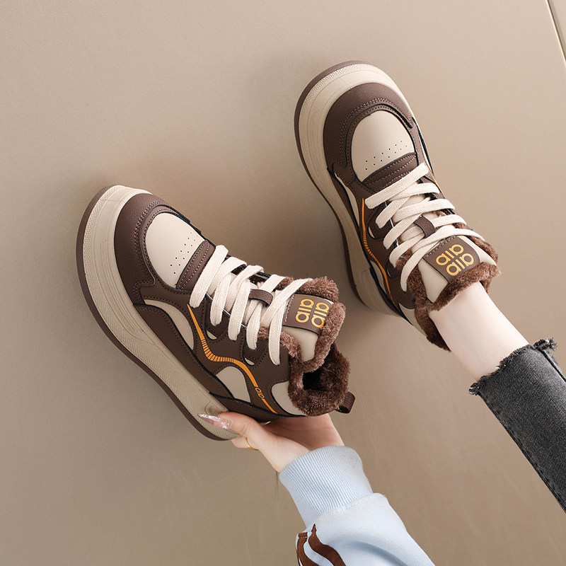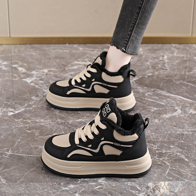 蜘蛛王女鞋踩屎感加绒运动鞋2025新款冬季真皮保暖二棉厚底板鞋高