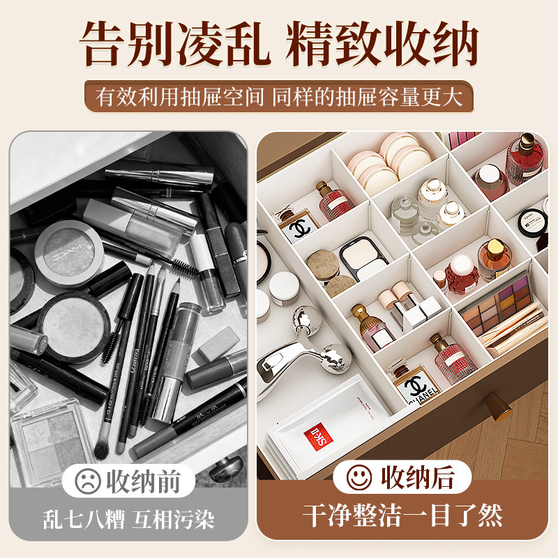 可伸缩抽屉收纳盒化妆品分隔收纳梳妆台分格桌面小杂物厨房整理盒